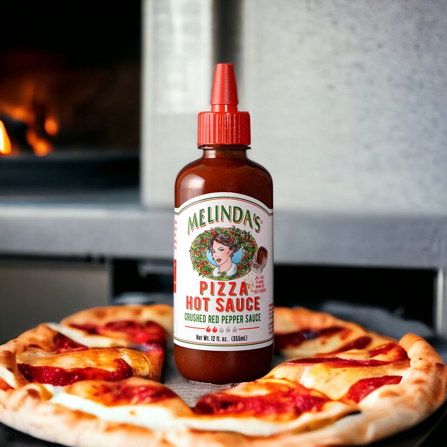 Melinda’s Pizza Hot Sauce. The perfect pie topper. Made with garlic, sweet red peppers and spicy red Cayenne peppers, this zesty sauce is designed to complement your favourite pizza. Made the Melinda’s way: with whole, fresh ingredients and the best peppers on the planet for people who care about those kinds of things. Uses: Pizza, calzones, meatballs and marinara. Did we mention it is great on pizza?