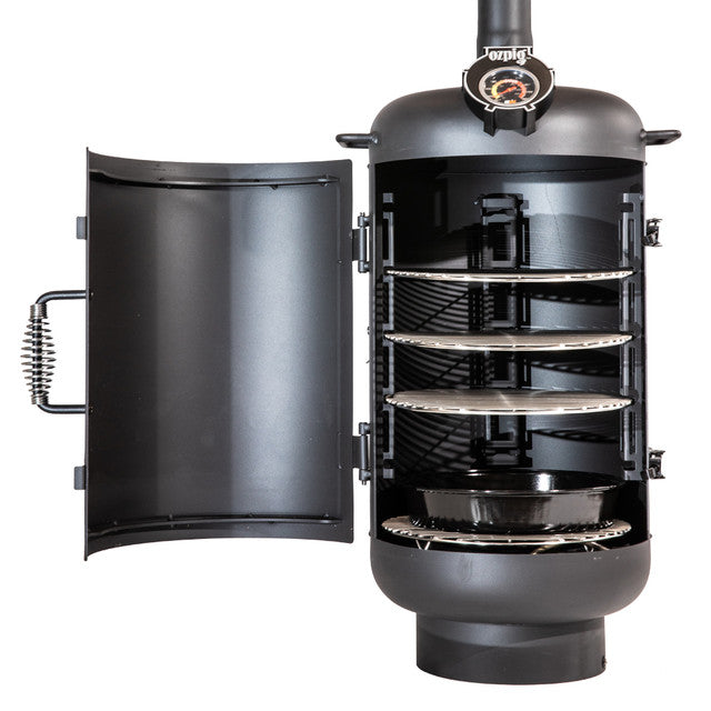 The perfect partner for the Ozpig or Big Pig - the Ozpig Oven Smoker is capable of maintaining stable temperatures for low and slow cooking and smoking (great for American style BBQ ). Temperatures can be dialled up for roasting meats and vegetables all the way through-to much higher heats for cooking wood fired pizzas, giving it true versatility.
