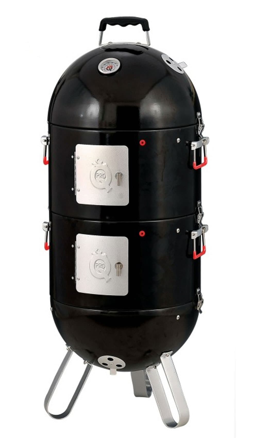 With both stackers, you can cook on 2 levels. The waterpan (filled with water or sand) is used as a heat deflector between the fire and the food, enabling you to control your cooking temperature, perfect for both hot & fast or low'n slow barbecuing. This setup is most common for larger cuts of meat where slow cooking is called for such as brisket, pulled pork, ribs and hot smoked salmon. The large chamber is also perfect for cold smoking when using the ProQ Cold Smoke Generator (available separately).