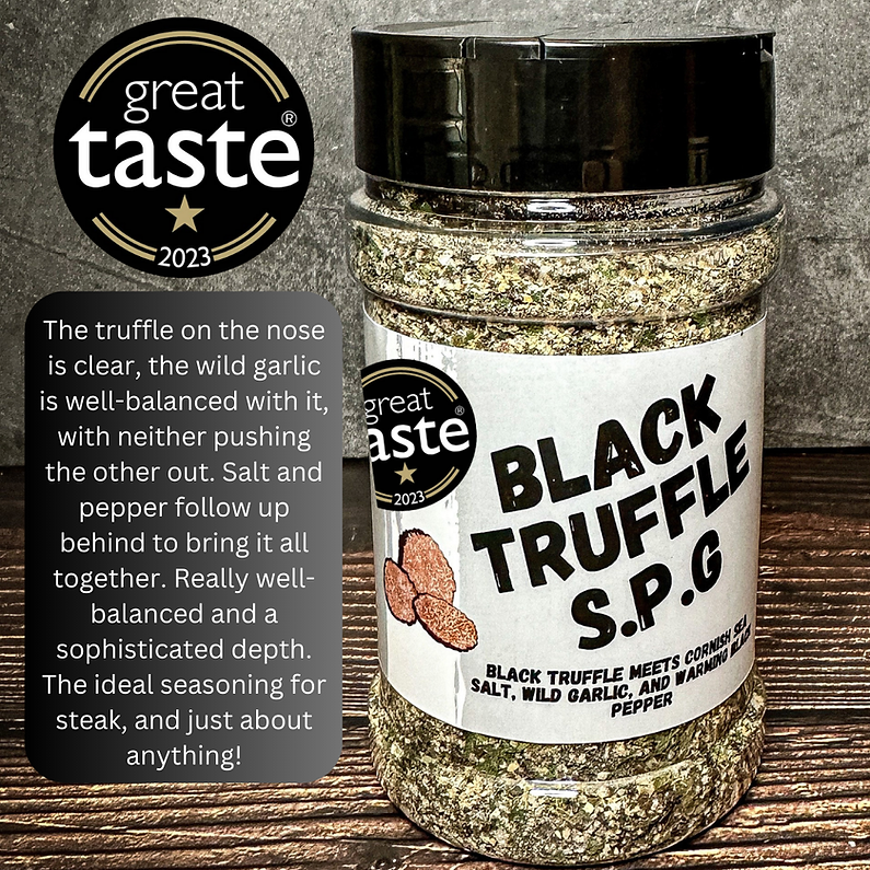 S.P.G is favoured by the Texans for their bbq seasoning and our version follows the same simple concept, but amped up with the exceptional inclusion of Black Truffle and Wild Garlic. The grain size is perfect for applying to larger cuts and holds up under cooking, or can be used as a simple finishing seasoning hit.